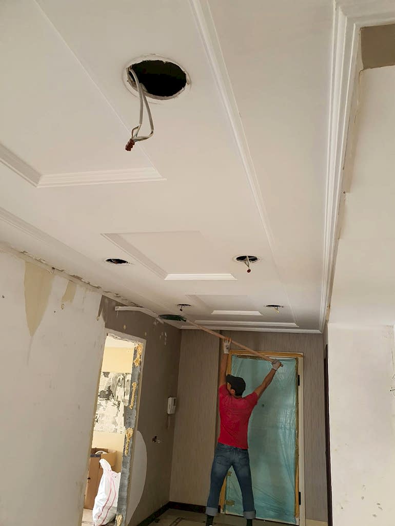 Bu şekilde doğru mesafeler alınarak doğru köşeden kesilme işlemi yapılmaktadır. Yapıştırma malzemesi olarak tercih edilen alçı karışımı hazırlanarak yapıştırılacak yere sürülmektedir. Kartonpiyer yapıştırıldıktan sonra kişinin eli muhakkak yapışana kadar bekletmektedir. Geçen yerler bir sünger yardımı ile temizlenerek silinmelidir. Uygulama bu şekilde gerçekleşerek oldukça güzel sonuçlar vermektedir.